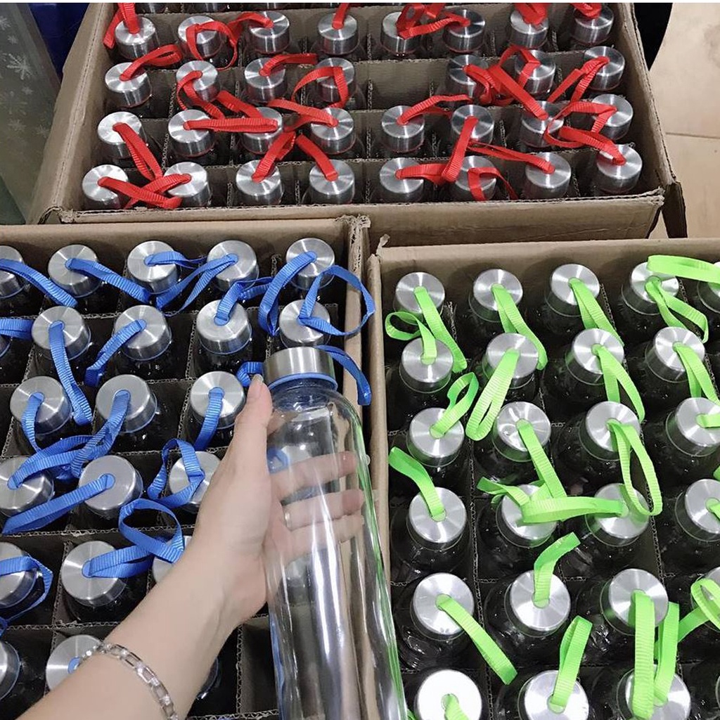 Chai Nước Thủy Tinh Đựng Nước Ép - Bình Đựng Nước Nắp Thiếc Có Dây Siêu Bền-Chai trụ có dây 500ml