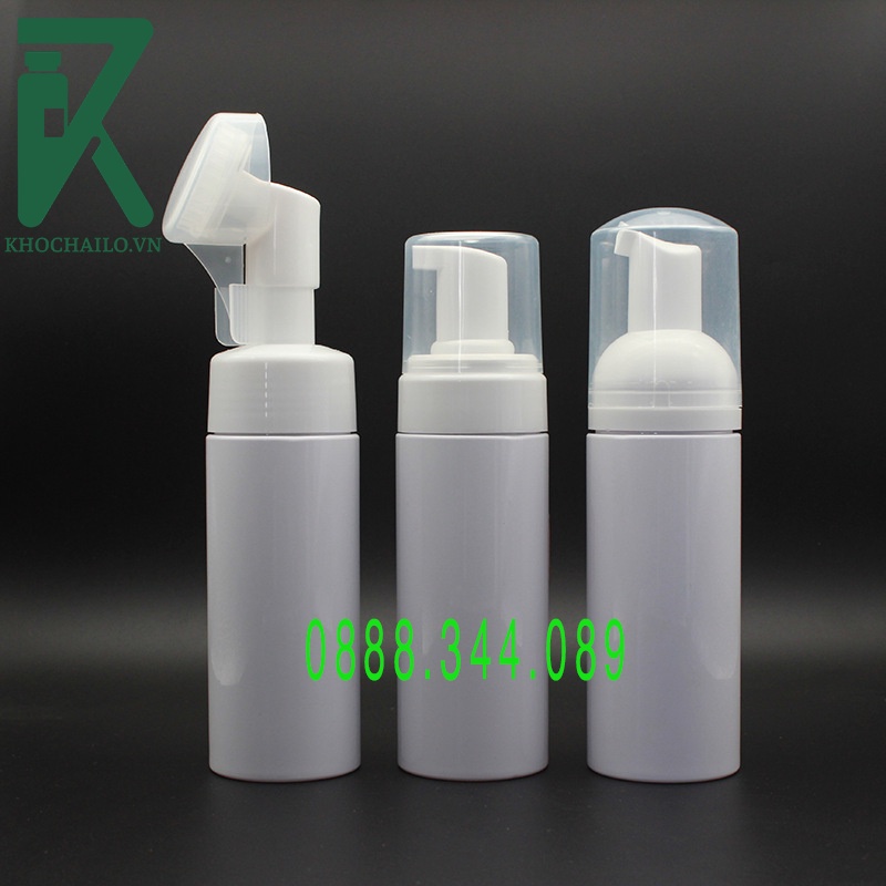 Chai pet tạo bọt đầu bàn chải thân trắng sứ,100ml,120ml,150ml