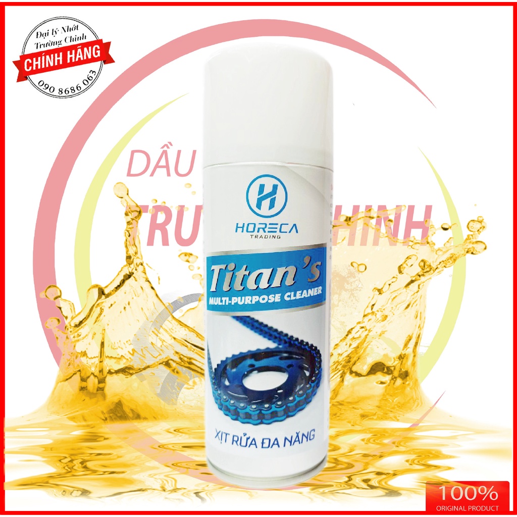 Rửa sên, vệ sinh sên Horeca Titan's 400ml là sản phẩm chất lượng.Rửa sên, vệ sinh sên Horeca Titan's sử dụng cho sên thường và sên phốt cao su từ lớn đến nhỏ