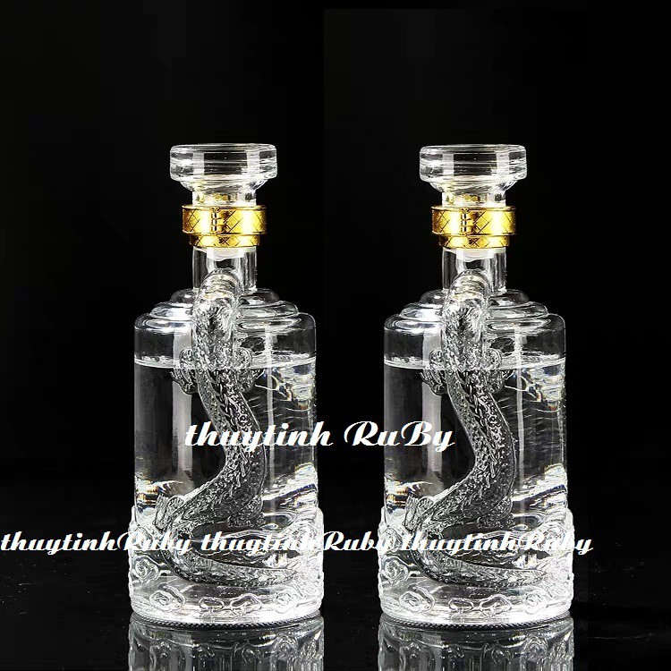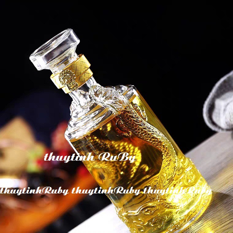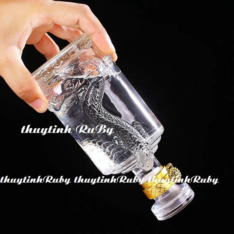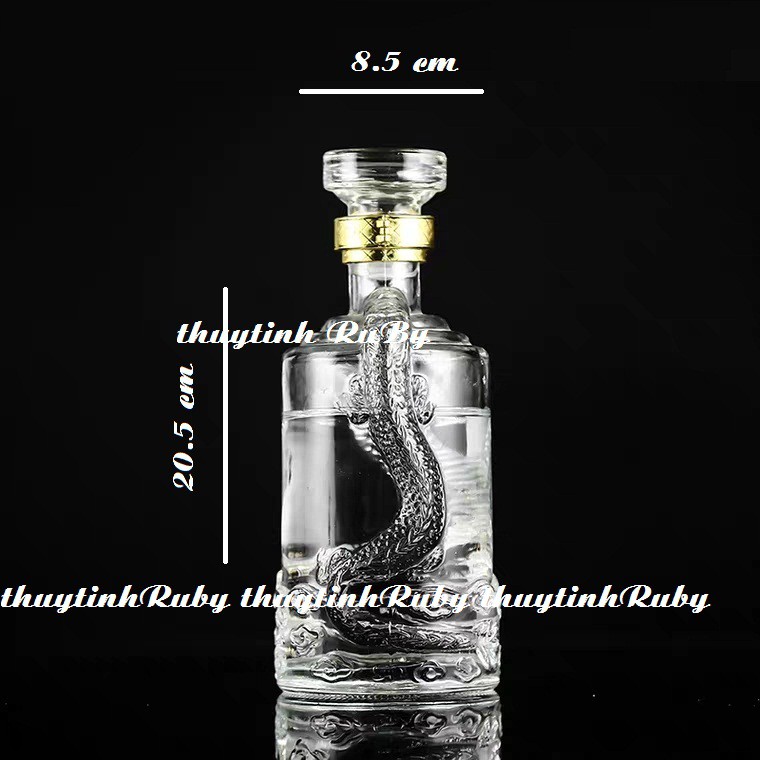 Chai Rượu Thủy Tinh XO Trụ Rồng 500ML, Vỏ Chai Rượu Kiểu, vỏ chai ngâm rượu, bình ngâm sâm kiểu dáng đẹp lạ, sang trọng.Dung tích: 500 lít