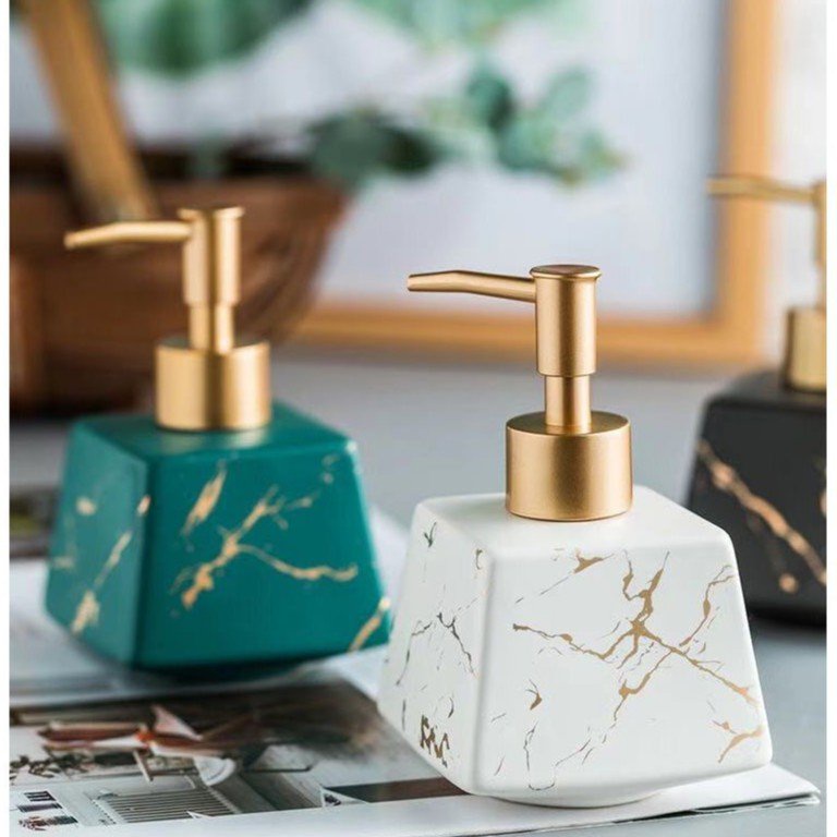 Nhà cửa & Đời sống > Đồ dùng phòng tắm > Kệ đựng xà phòng || Chai Sứ Đựng Nước Rửa Tay 260ml, Bình Đựng Dầu Gội Sữa Tắm Vòi Nhấn Sang Trọng Decor Nhà Tắm Khách Sạn Cao CấpCòn hàng