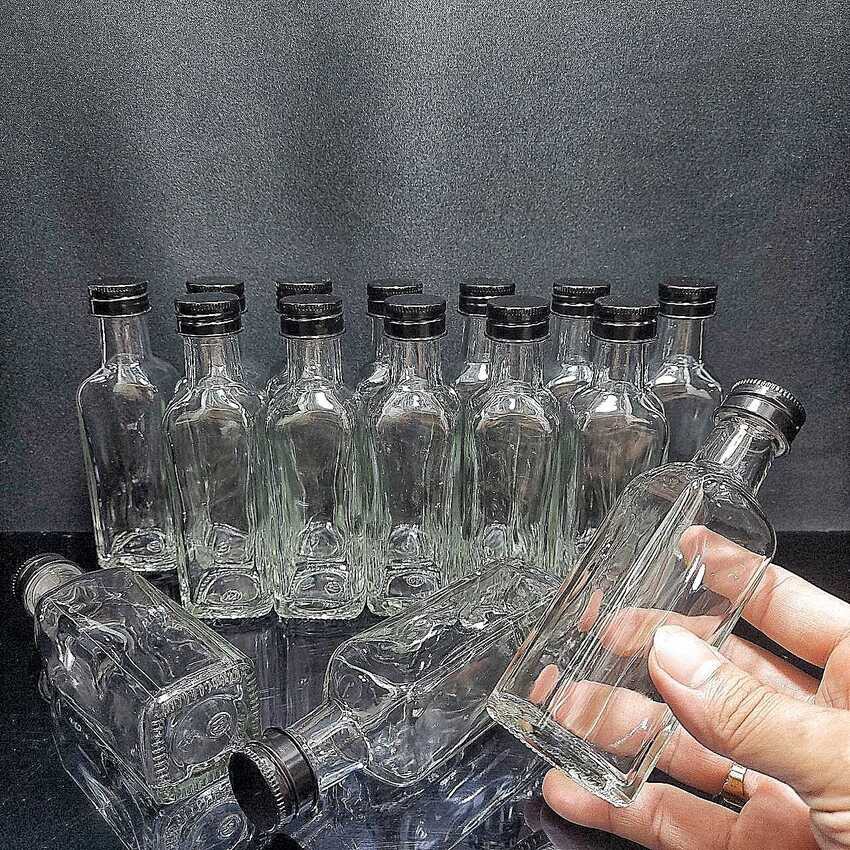 Chai Thủy Tinh 100ML (combo 15 chai) mẫu Vuông Cao nắp nhôm đen – Lọ thủy tinh nhỏ 100ML - Chai Thủy Tinh Nhỏ 100ML – Chai Thủy Tinh Mini đựng mật ong, dầu dừa, nước mắm, thức uống, sữa, các loại thực phẩm - Vỏ Chai Rượu MiniMini Glass Bottle 100ML – High Square shape – Black aluminum cap - Combo 15 bottles