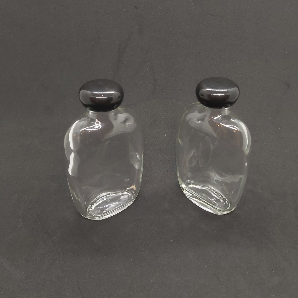 Nhà cửa & Đời sống > Bộ đồ bàn ăn > Bình nước & phụ kiện || Chai thủy tinh 100ML (combo 2 chai) mẫu Bầu Dục, Dẹt - Nắp nhựa đen trònCòn hàng