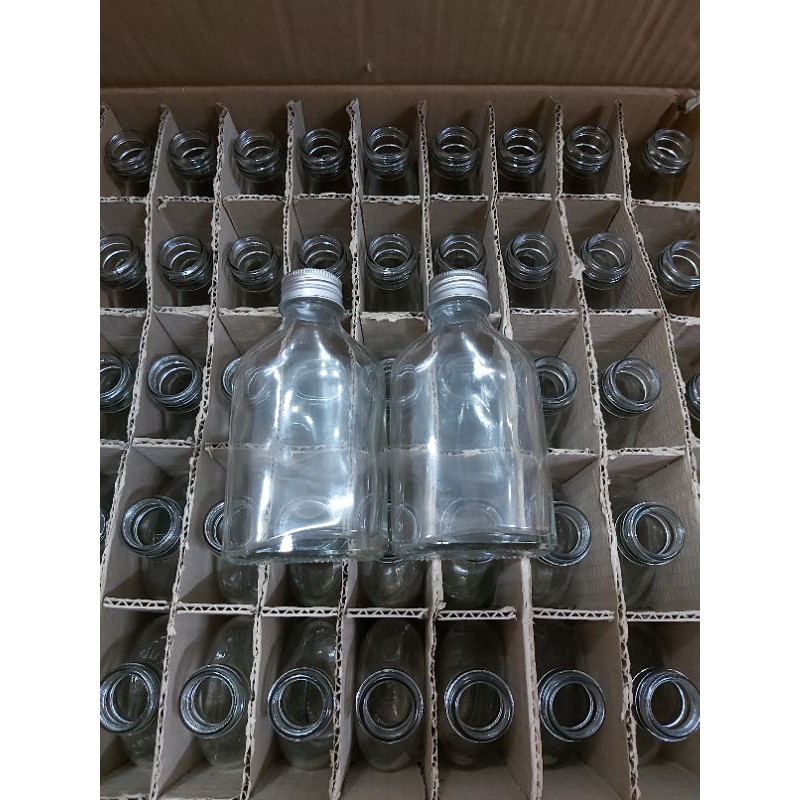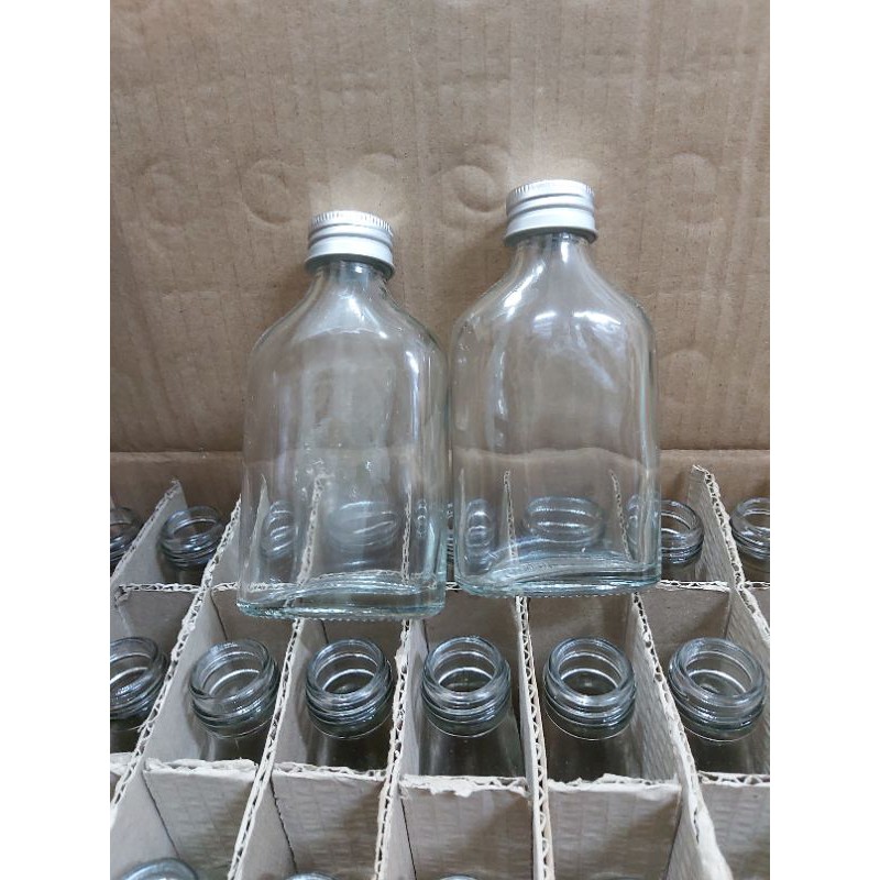 Nhà cửa & Đời sống > Bộ đồ bàn ăn > Bình nước & phụ kiện || chai thủy tinh 100ml thân vuông dẹp cổ cao nắp nhômCòn hàng