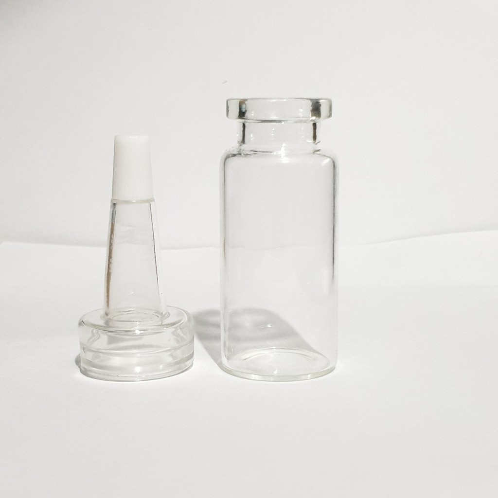 - Chai màu trong suốt. Nắp đậy bằng cao su.