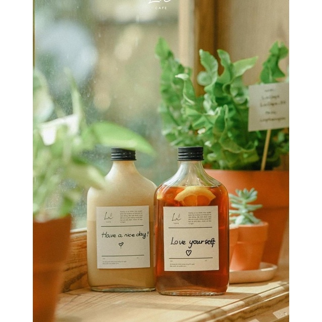 Nhà cửa & Đời sống > Bộ đồ bàn ăn > Bình nước & phụ kiện || Chai thuỷ tinh 250ml 350ml dáng dẹt năp nhôm đựng cafe, bạc sỉu, nước ép, đồ uống tiện lợiCòn hàng