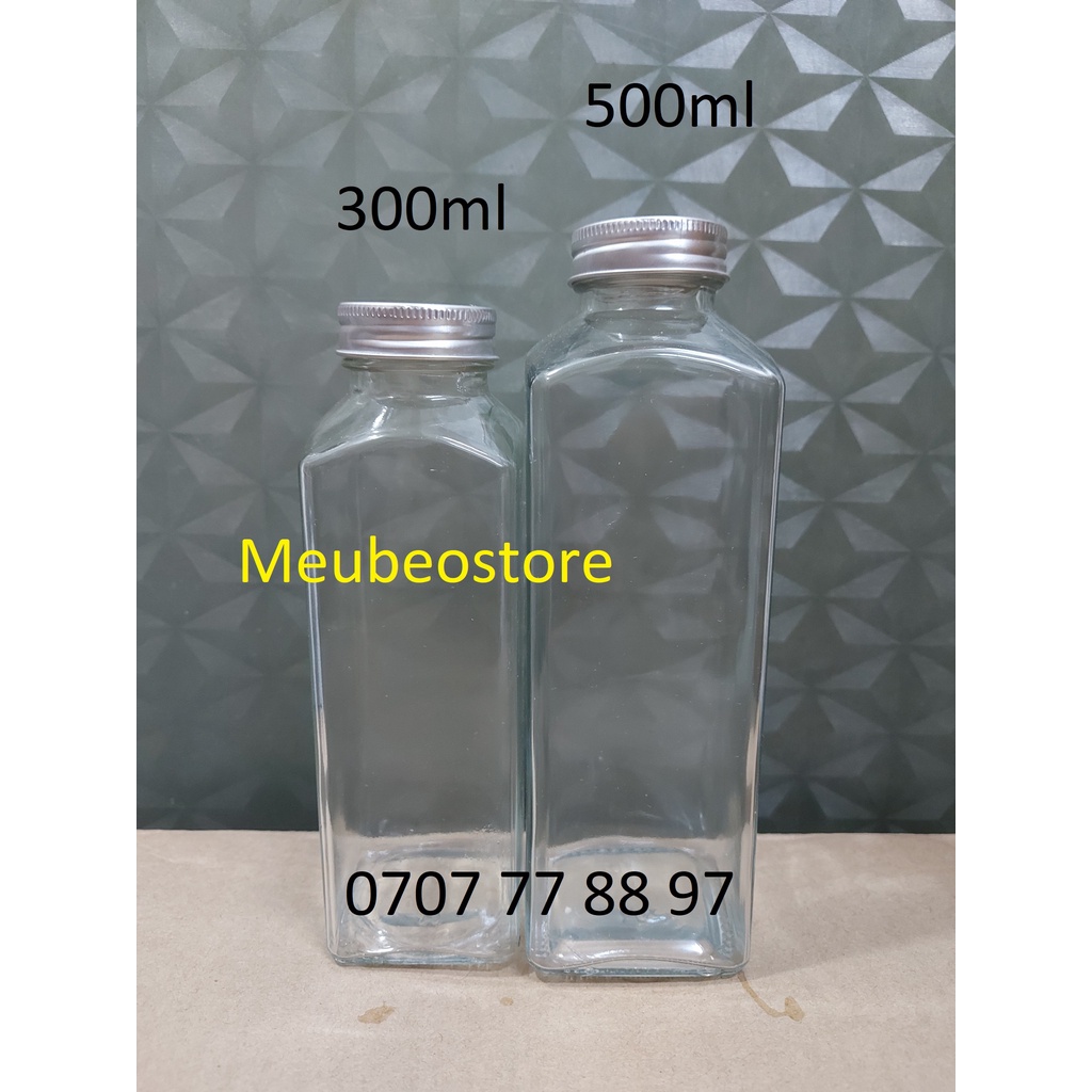 Chai thủy tinh miệng rộng thân vuông nắp nhômDung tích 300ml