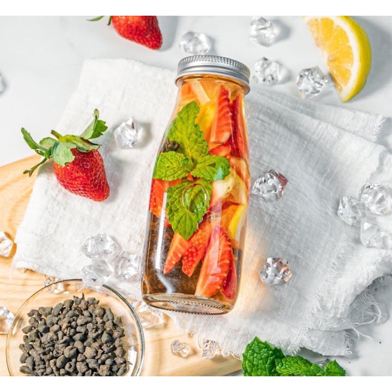 Chai thủy tinh 300ml nắp kim loại đựng sữa, detox, cafe,hạt các loại
