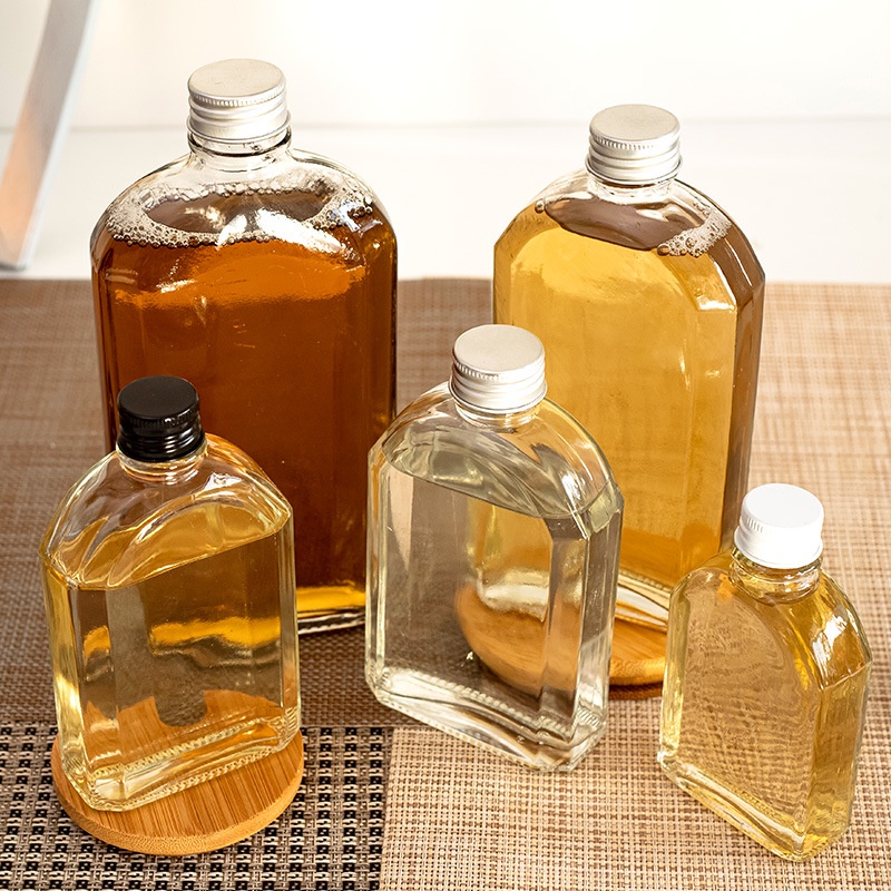 Nhà cửa & Đời sống > Trang trí nhà cửa > Bình trang trí || Chai thủy tinh 350ml đựng nước ép, sữa hạt, cafe vai dẹt dẹp, lọ thủy tinh trang trí decor KIDOCòn hàng