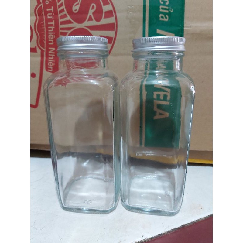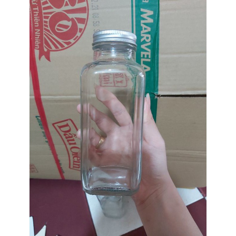 chai thủy tinh thân vuông miệng rộng nắp nhômdung tích 350ml