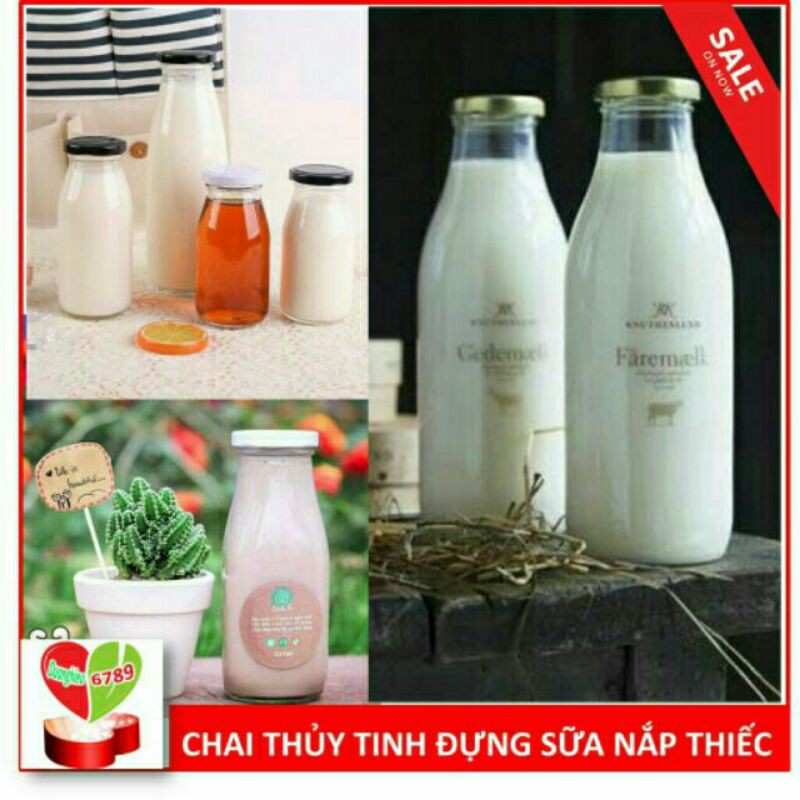 -- Chai Thủy Tinh Đựng Sữa 500ml ngoài công dụng đựng sữa ra thì còn được sử dụng để đựng dầu dừa, dầu oliu, dầu ăn em bé, dầu gấc, decor, nước ép trái cây, sinh tố, mật ong, trồng cây, cắm hoa hoặc làm đồ trang trí…
