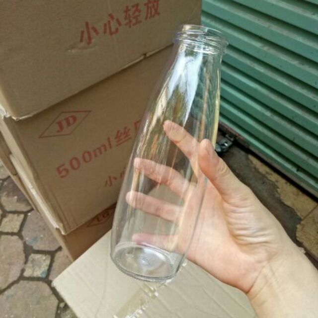 Chai Thủy Tinh Đựng Sữa 500mlĐường kính thân 7cm x Chiều cao 20cm, đường kính miệng 4cm