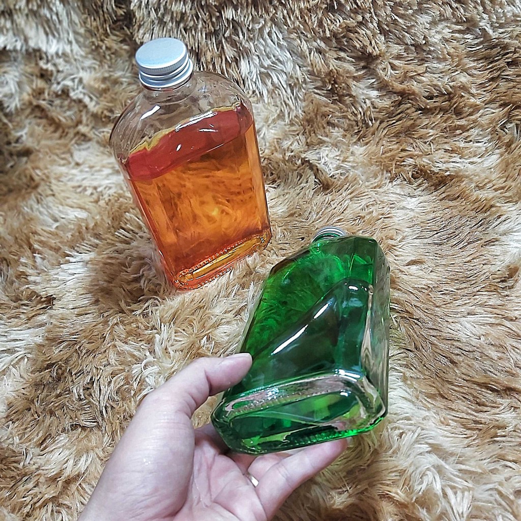 Chai thủy tinh 500ML cao cấp VUÔNG Vát Vai kiểu DẸT (1 chai) – nắp nhôm - Vỏ Chai thủy tinh 500ML, bình thủy tinh trong suốt✅ Ứng dụng: chiết rượu quí mang đến nhà mời bạn bè, đựng thức uống mang theo, đựng Dầu Dừa, các loại dung dịch loãng cần trong đời sống,…
