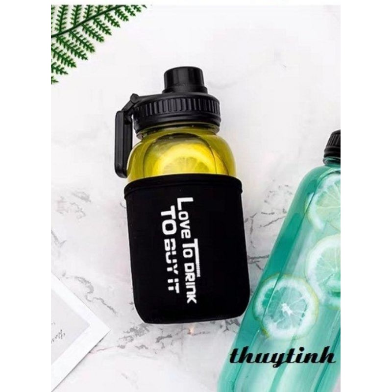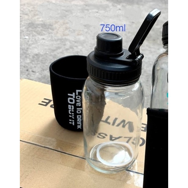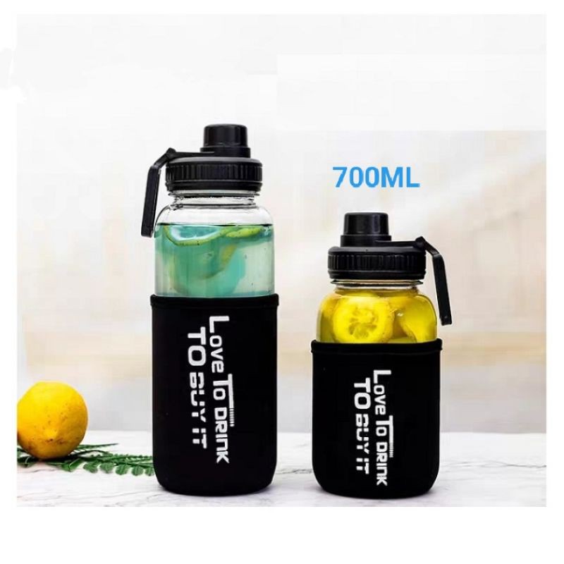 Nhà cửa & Đời sống > Bộ đồ bàn ăn > Bình nước & phụ kiện || CHAI THỦY TINH 700ML - CHAI ĐỰNG NƯỚC CÓ BAO ĐEN NẮP NHỰA ĐENCòn hàng