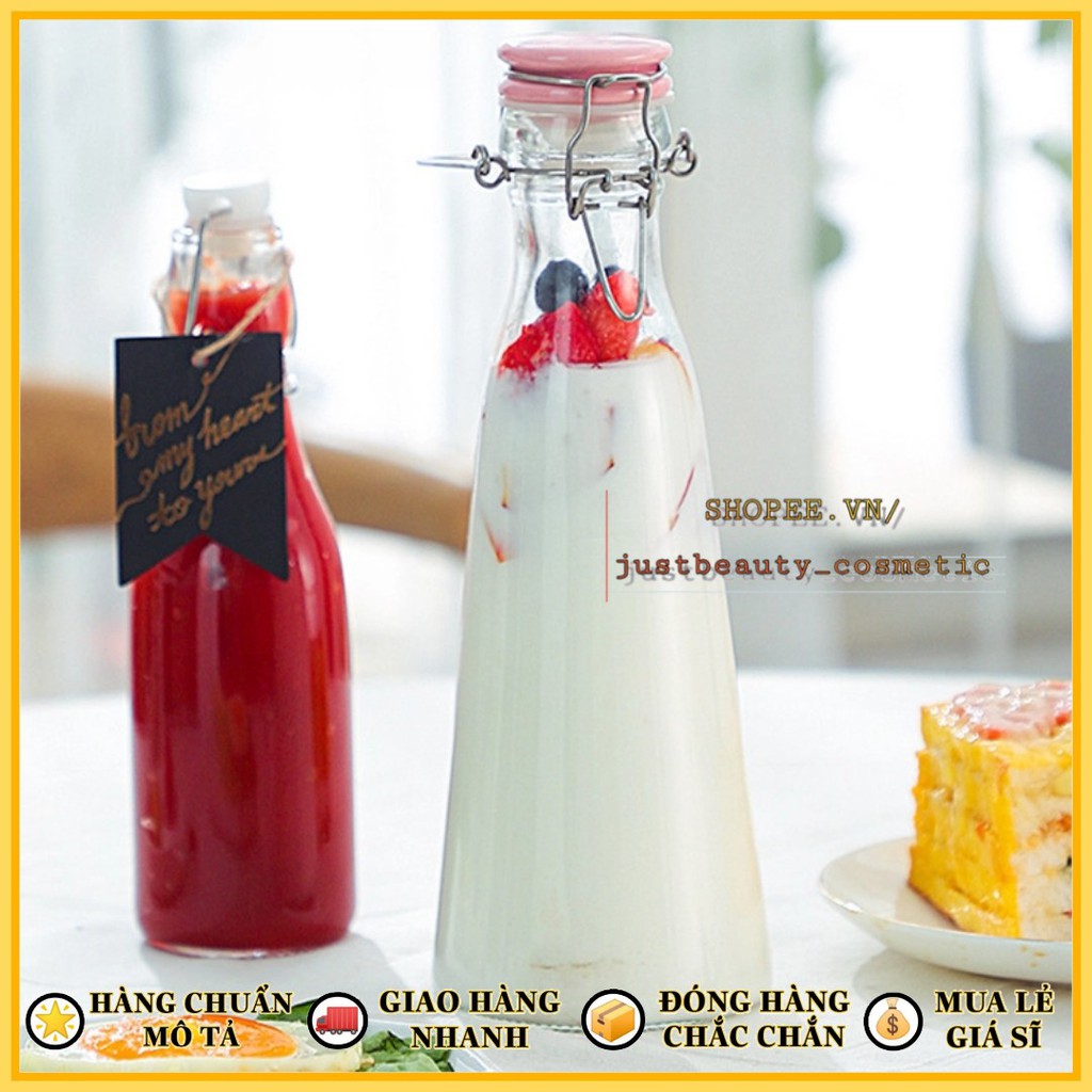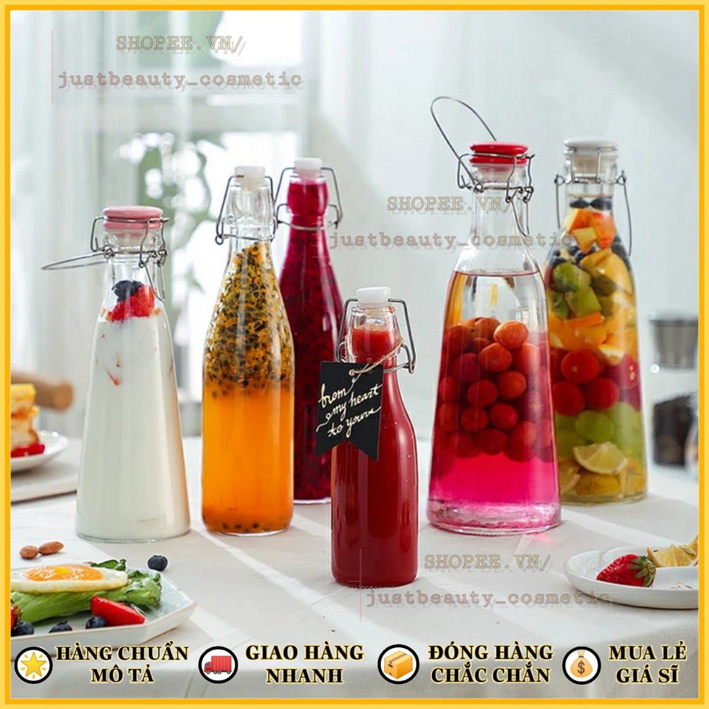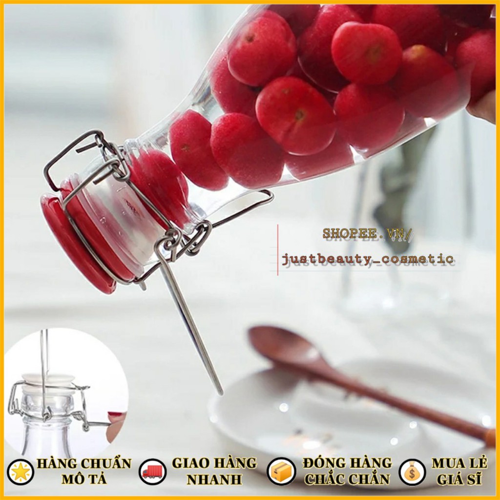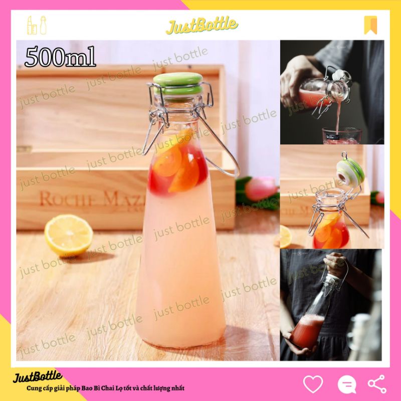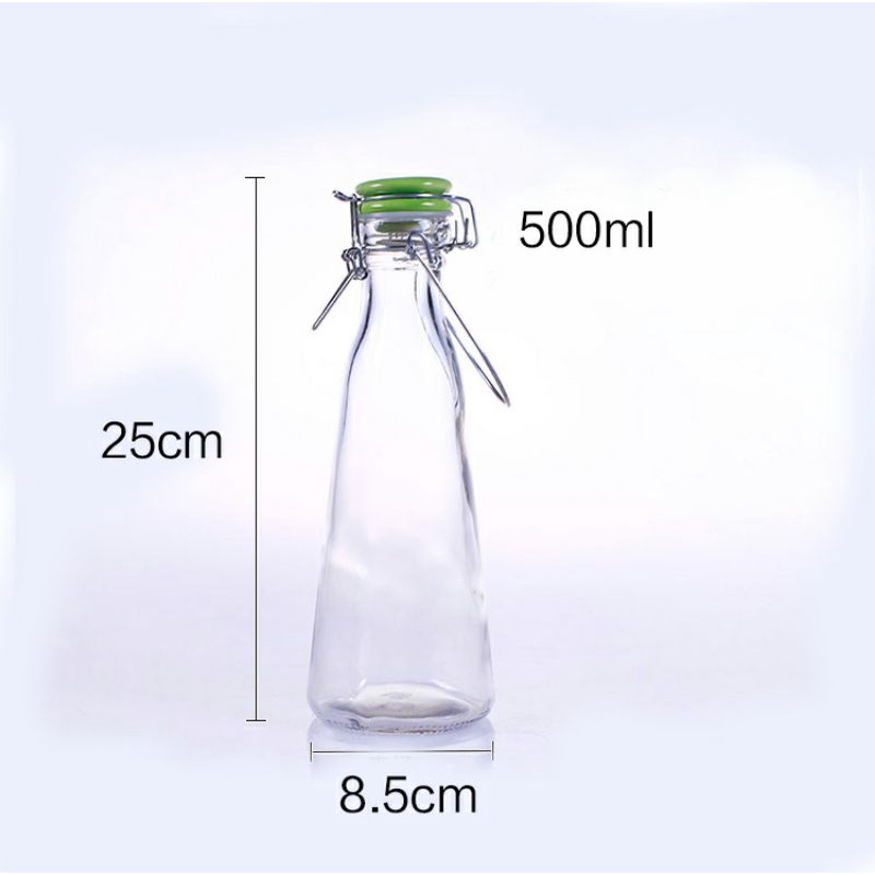 Nhà cửa & Đời sống > Bộ đồ bàn ăn > Bình nước & phụ kiện || CHAI THỦY TINH CÓ NẮP CÀI gọng thép kín hơi hình tháp 500ML - LỌ THỦY TINH NẮP GÀI nhựa kiểu Ý nhập khẩuCòn hàng