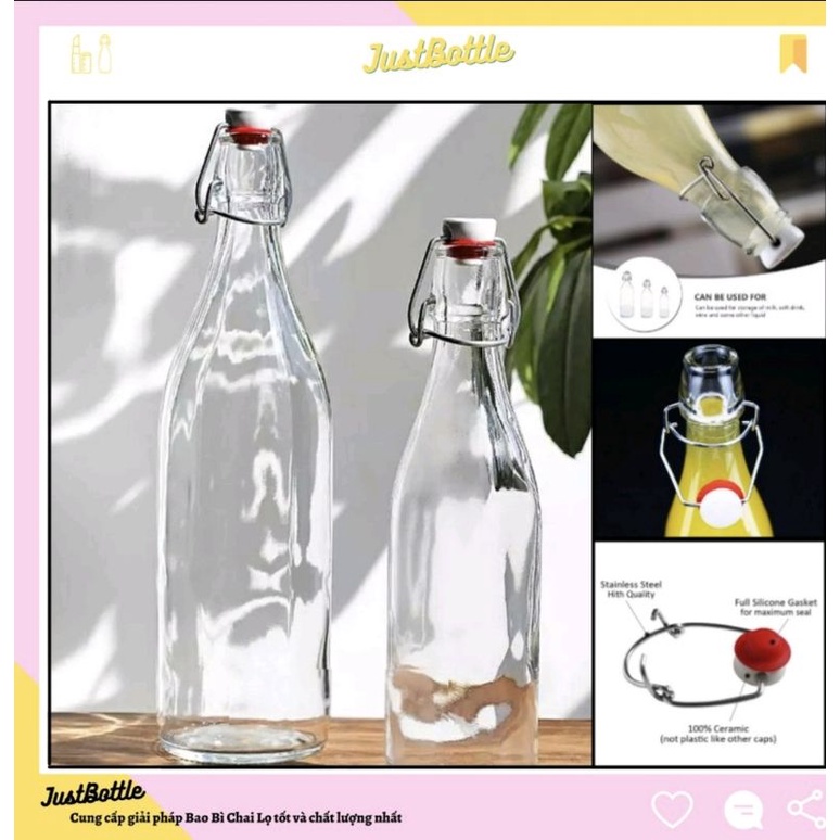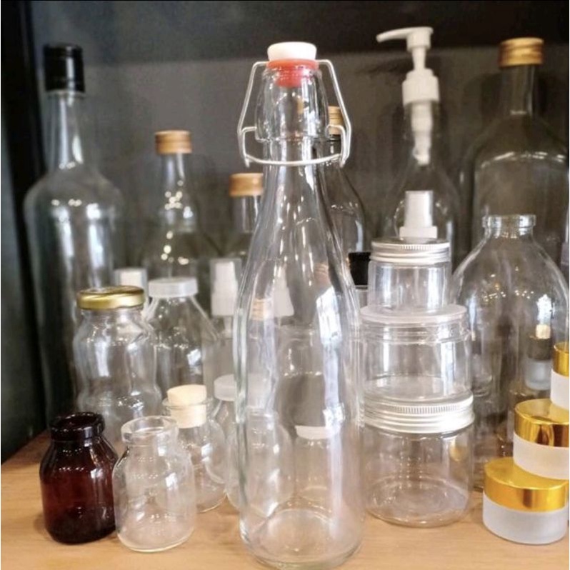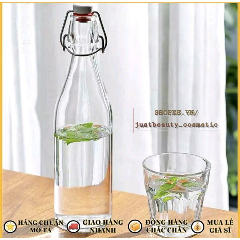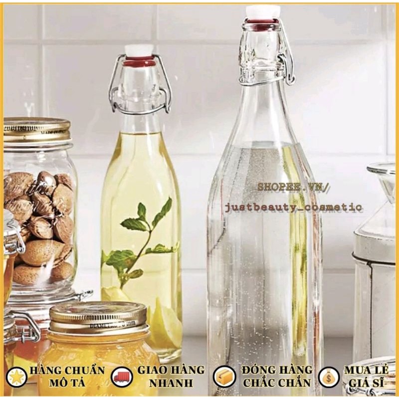 CHAI THỦY TINH có NẮP GÀI dáng Vuông/Tròn/Bầu kín hơi🍀 LỌ THỦY TINH nút CÀI nhựa kiểu Ý nhập khẩu 250ml 500ml 1L 1000ml#chaithuytinhnapcaikinhoi