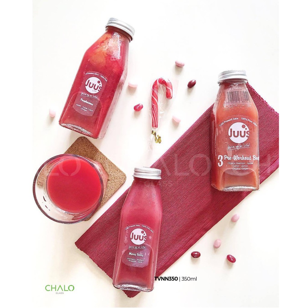 Chai thủy tinh dáng vuông nắp nhôm 350ml (Combo 03 chai trơn, không in hình)