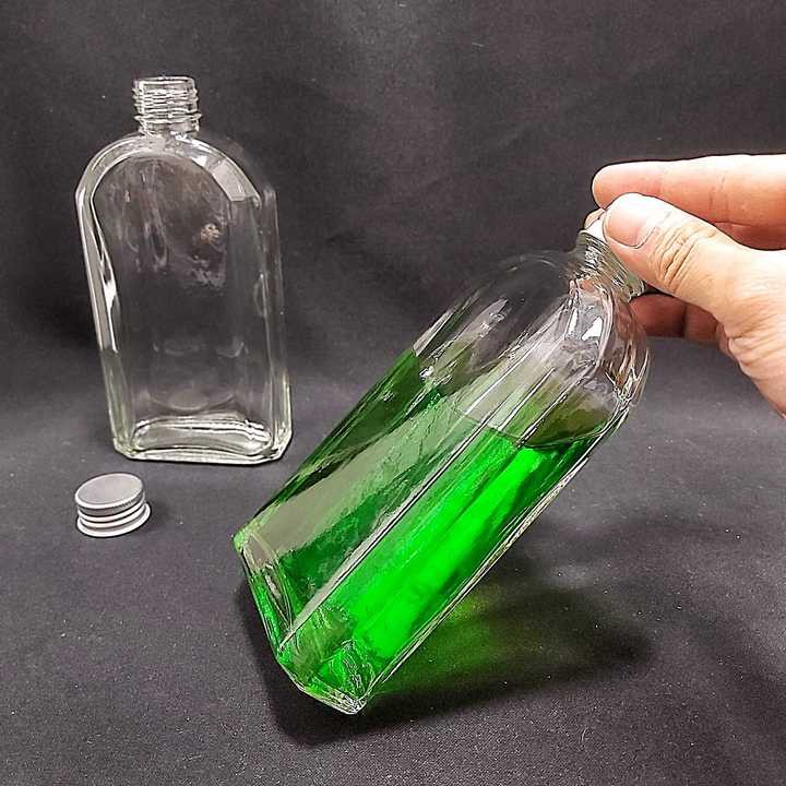 Vỏ chai thủy tinh dẹp được làm bằng thủy tinh dày dặn, hơn 4 li không sợ đổ bể khi chứa thành phẩm bên trong.
