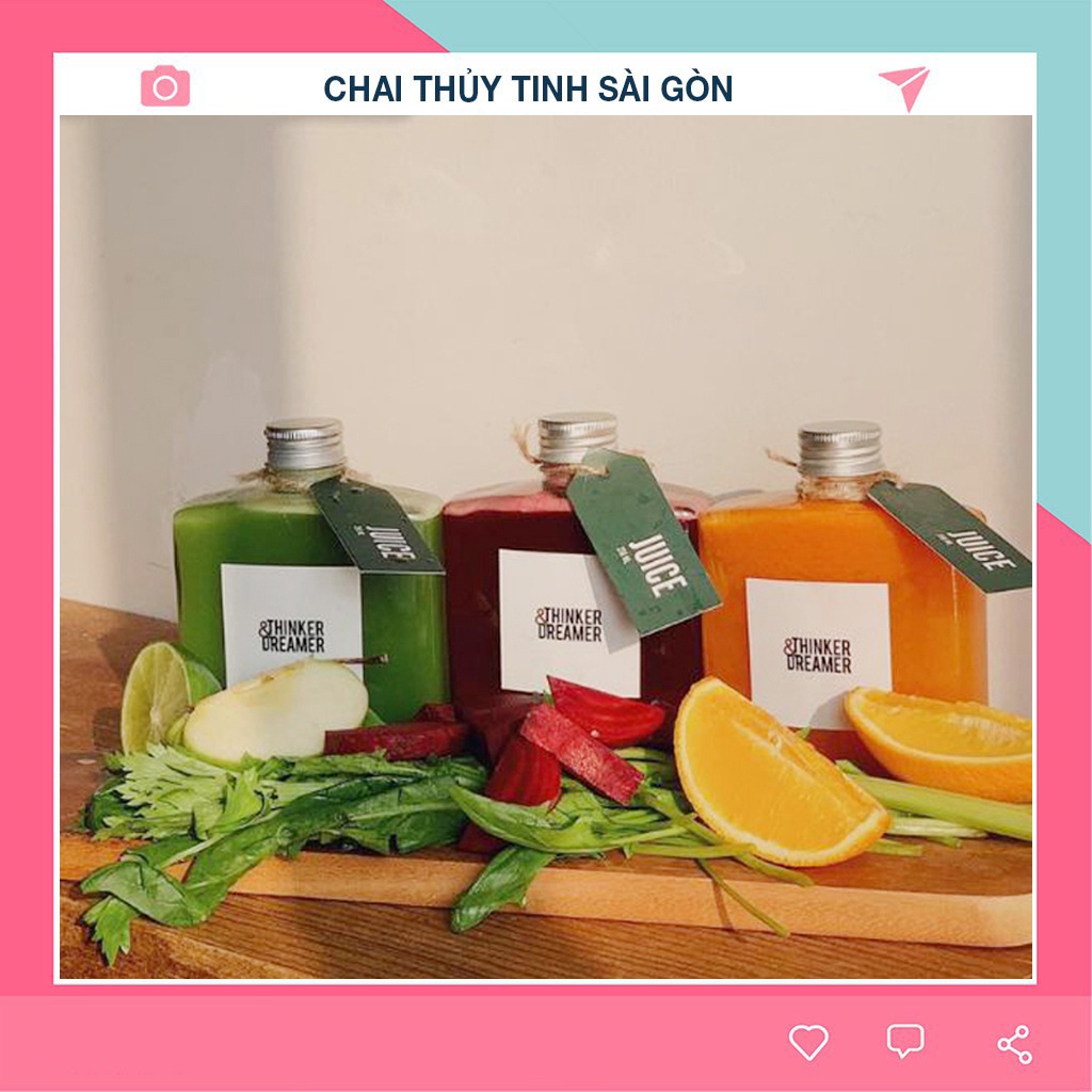 Giới thiệu Chai thủy tinh dẹp vuông lùn JUICE 250ML chuyên đựng nước ép trái cây