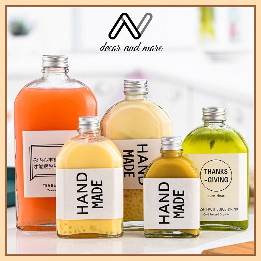 Chai thủy tinh det vai tròn, chai đựng nước ép AN DECOR- Sức chứa : 100ml, 250ml, 350ml