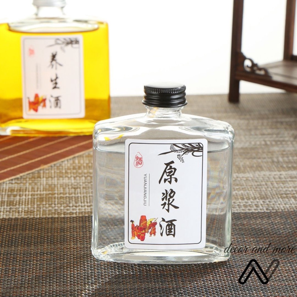 Chai thủy tinh dẹt vai vuông, chai đựng rượu AN DECOR- Sức chứa : 250ml