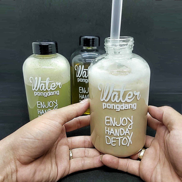 Chai thủy tinh đựng nước 600ml DETOX (combo 2 chai) - Nắp nhựa – ron cao su chống rỉ - Bình nước thuỷ tinh, đựng trà sữa, nước ép, café, sinh tố, sữa tươiGlass Water Bottle 600ml DETOX PONGDANG – black resin cap – combo 2 bottles