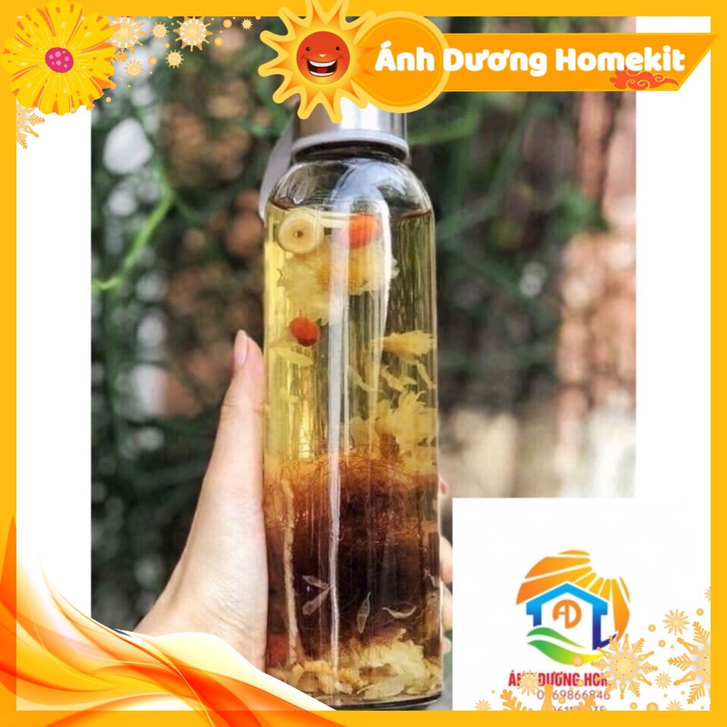 - chai thủy tinh trong suốt, dung tích lớn, đựng được nhiều loại nước khác nhau