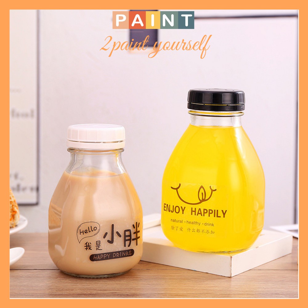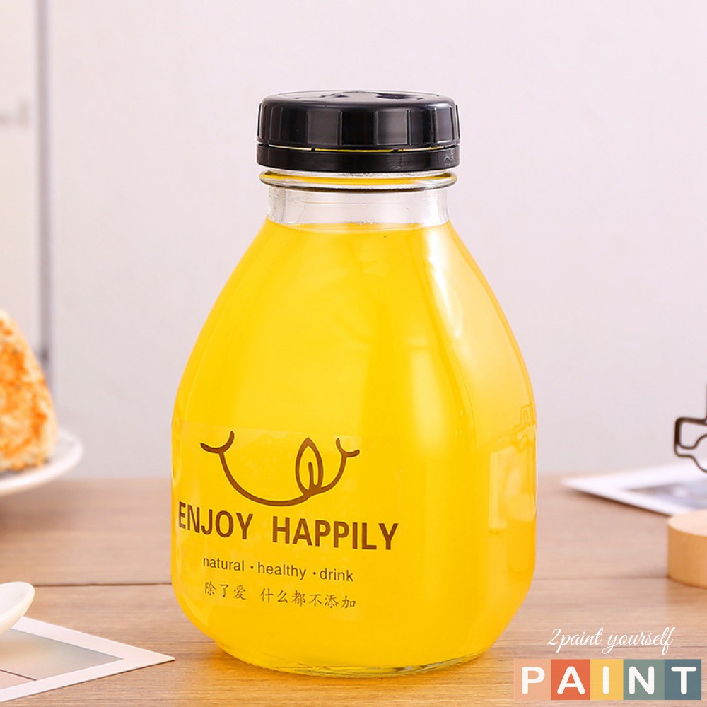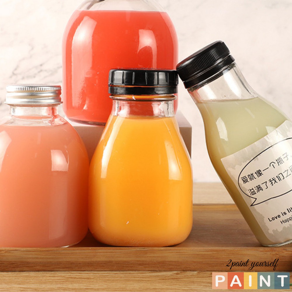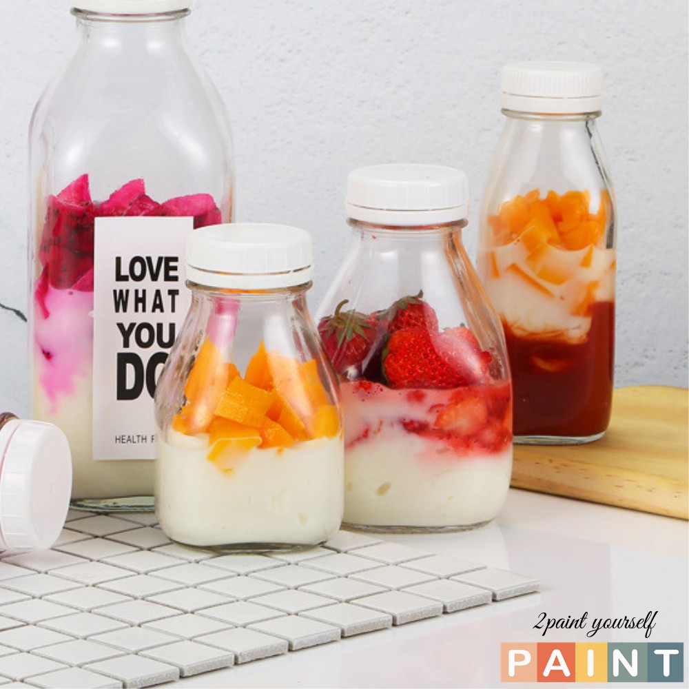 Giới thiệu Chai thủy tinh đựng nước ép, sữa chua dáng vuông nắp nhựa decor, trang trí phòng bếp 2paint