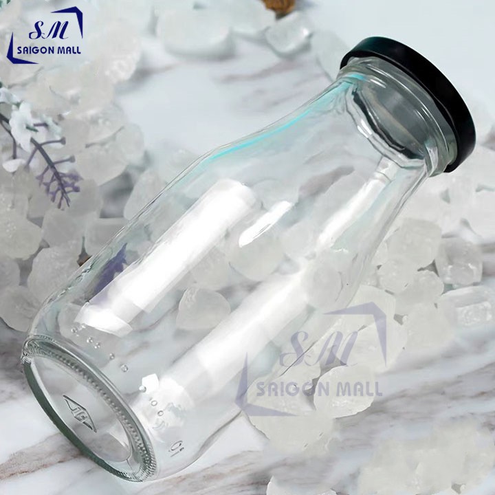 Chai thủy tinh đựng sữa,nước trái cây,detox nắp thiết đen 200MLĐường kính thân 6cm x Chiều cao 12cm