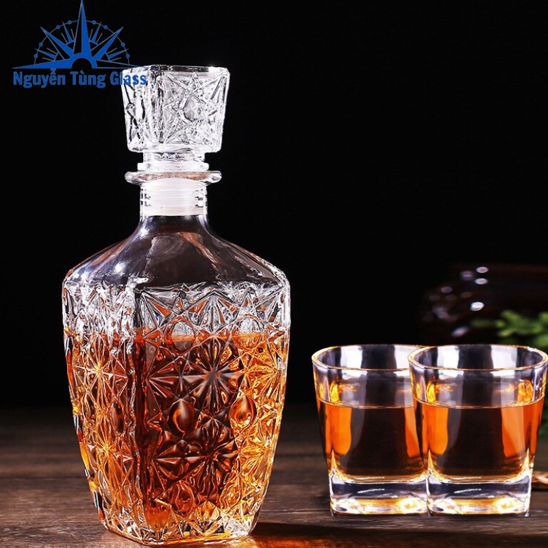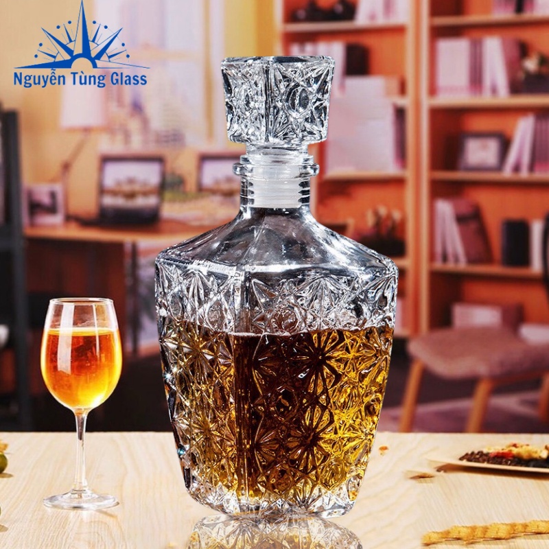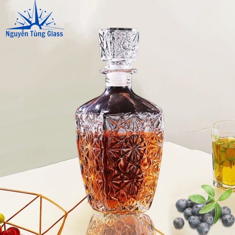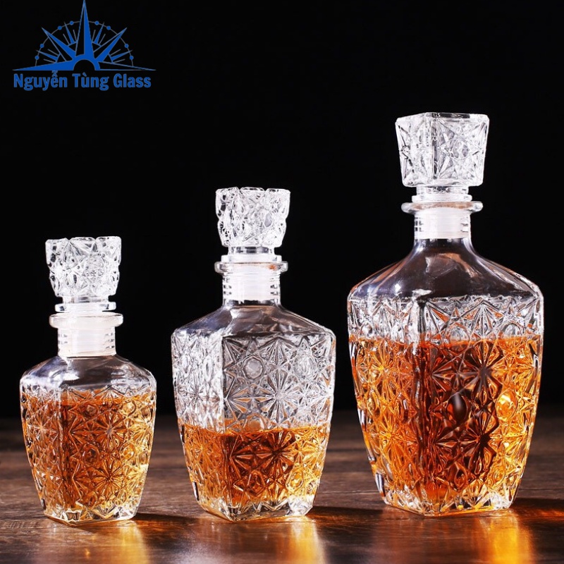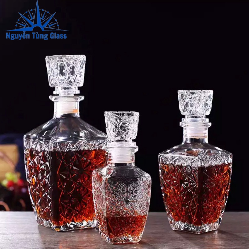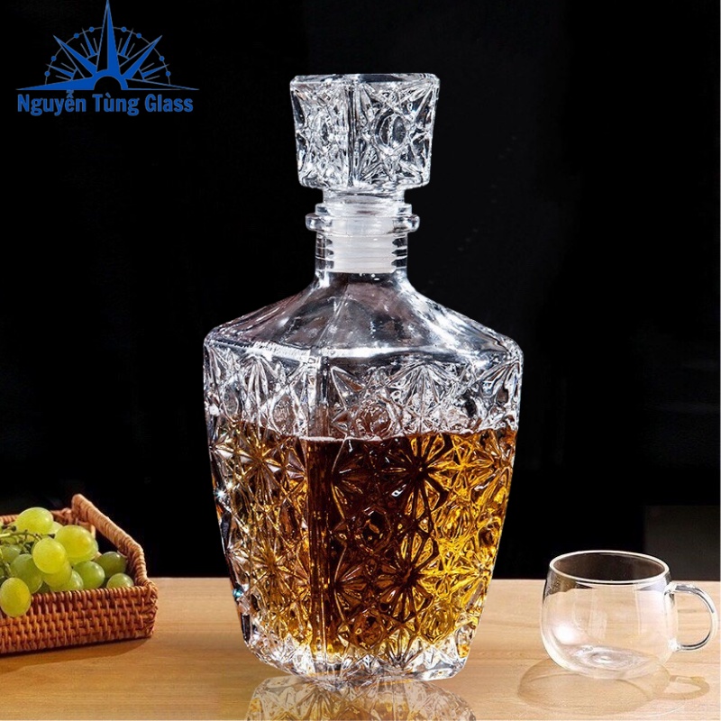 Thủy tinh trong veo tạo nên một sản phẩm tinh tế chuyên dùng đựng rượu, chiết rượu.