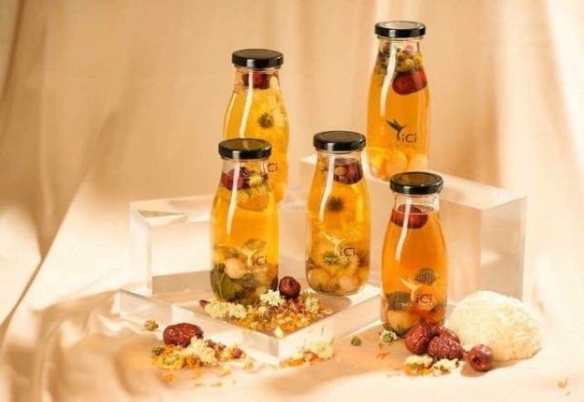 Sản phẩm thủy tinh trong suốt, nắp thiếc chặt, chống tràn.