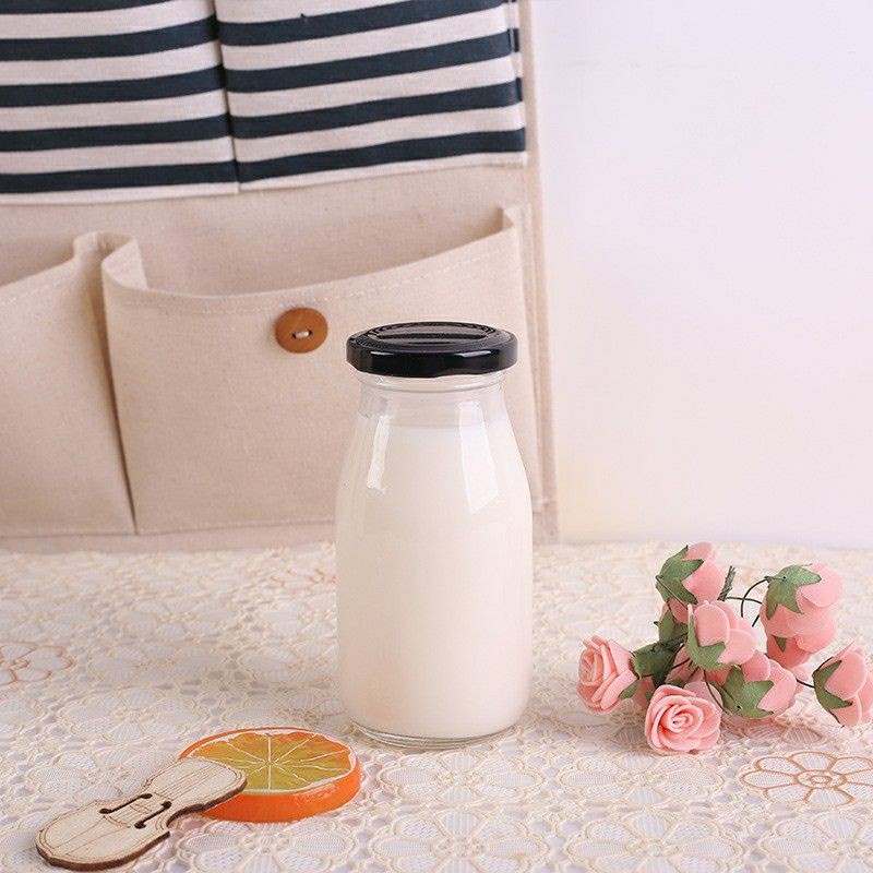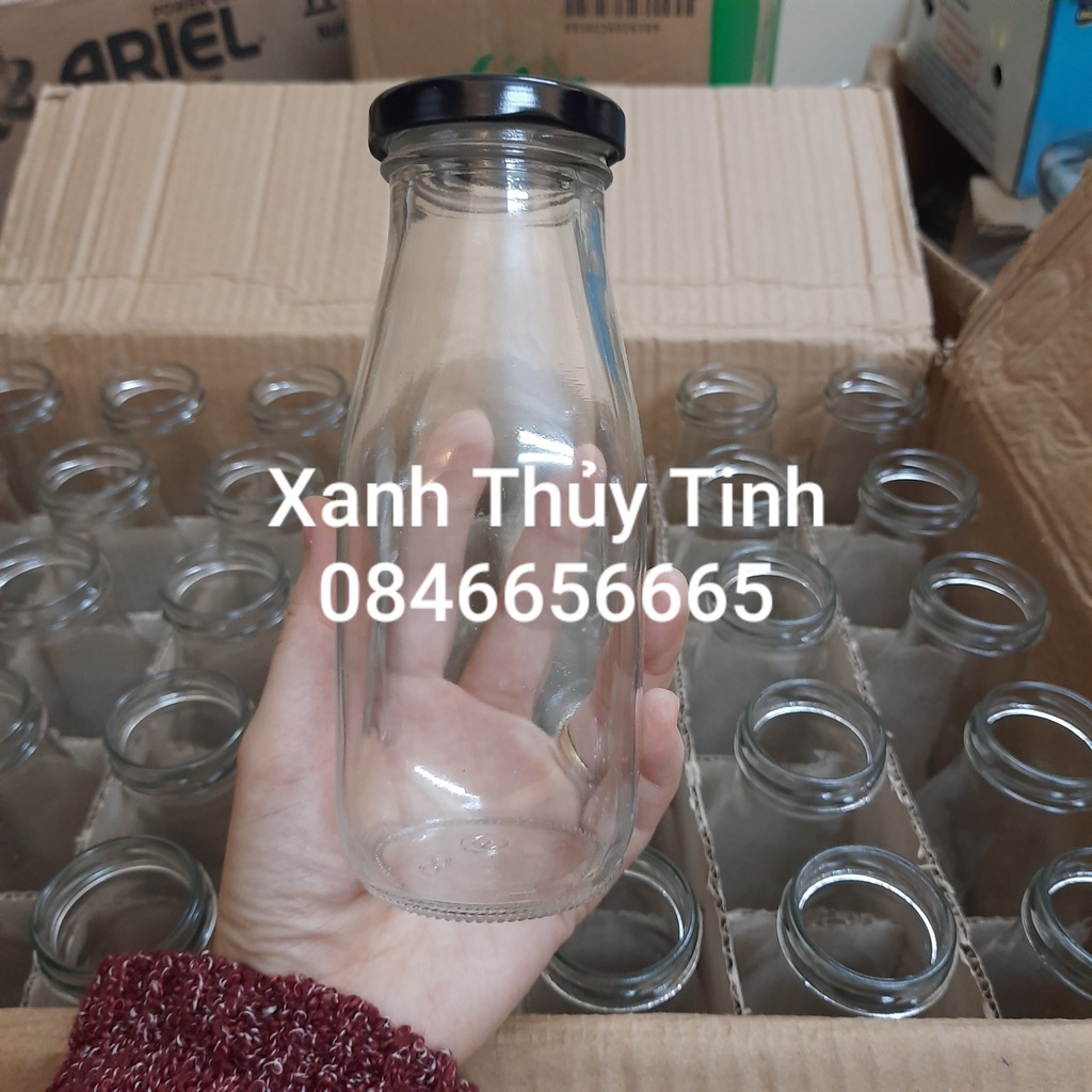 Giới thiệu Chai thủy tinh đựng sữa, nước hoa quả detox nắp thiếc đen hoặc vàng 200ml - 250ml - 310ml - 500ml -1000ml