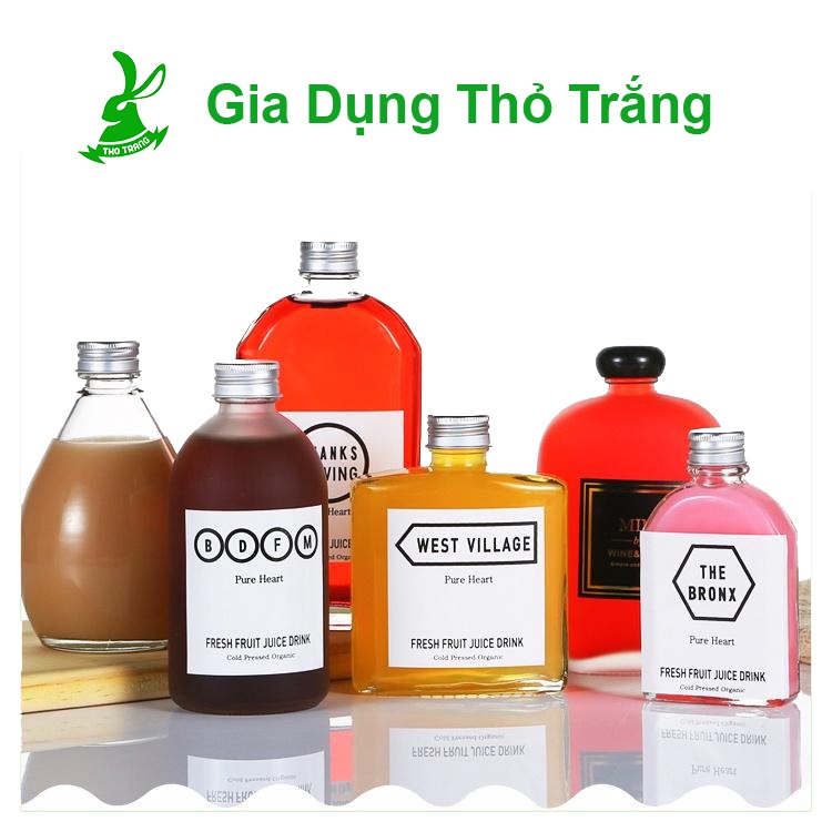 Giới thiệu Chai thủy tinh dung tích 250-350-500 ml đựng cà phê, nước ép, trà sữa (MÀU NẮP CHAI ĐEN/BẠC NGẪU NHIÊN)