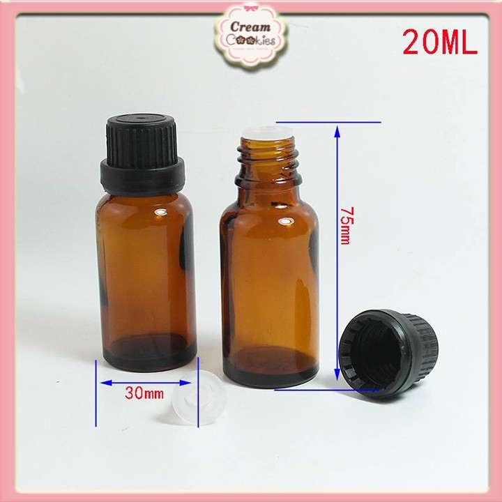 Chai Thủy Tinh Nhỏ Giọt 20ml (Lọ serum) dùng đựng hoặc chiết các loại mỹ phẩm dạng lỏng (serum, tinh dầu…). Được sử dụng để bảo quản mỹ phẩm rất tốt, chai màu nâu giúp tránh ánh nắng mặt trời. Đầu bóp giọt tiện dụng để lấy và đong chiết sản phẩm.