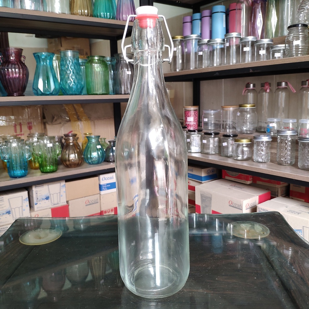 Nhà cửa & Đời sống > Bộ đồ bàn ăn > Bình nước & phụ kiện || Chai thủy tinh gọng sắt nắp gài 1 lít, chai đựng nước-NAUSCòn hàng