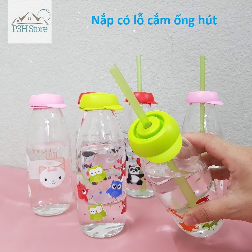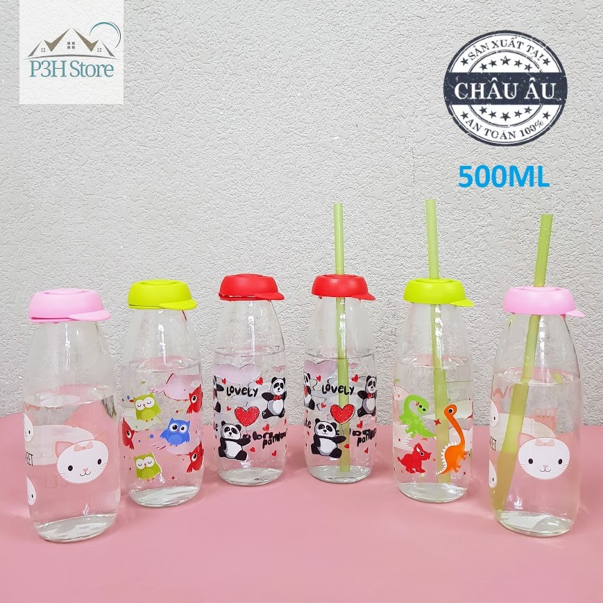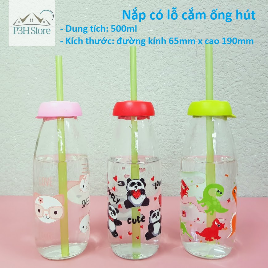 - Chai Đựng Sữa Tươi Thủy Tinh có kiểu dáng hiện đại với hoa văn hình gấu trúc kèm nắp đỏ đáng yêu, ngộ ngĩnh, không chỉ khiến các bé thích mê mà còn tạo niềm vui cho người lớn mỗi khi uống sữa, đồng thời còn góp phần tô điểm không gian phòng bếp và bàn ăn của gia đình.