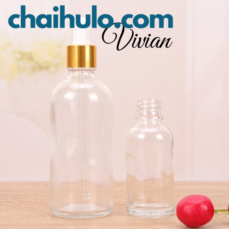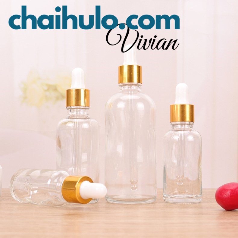 Giới thiệu Chai thủy tinh, lọ đựng tinh dầu serum thân trong nắp bóp nhôm vàng nhỏ giọt 5ml 10ml 15ml 20ml 30ml 50ml 100ml