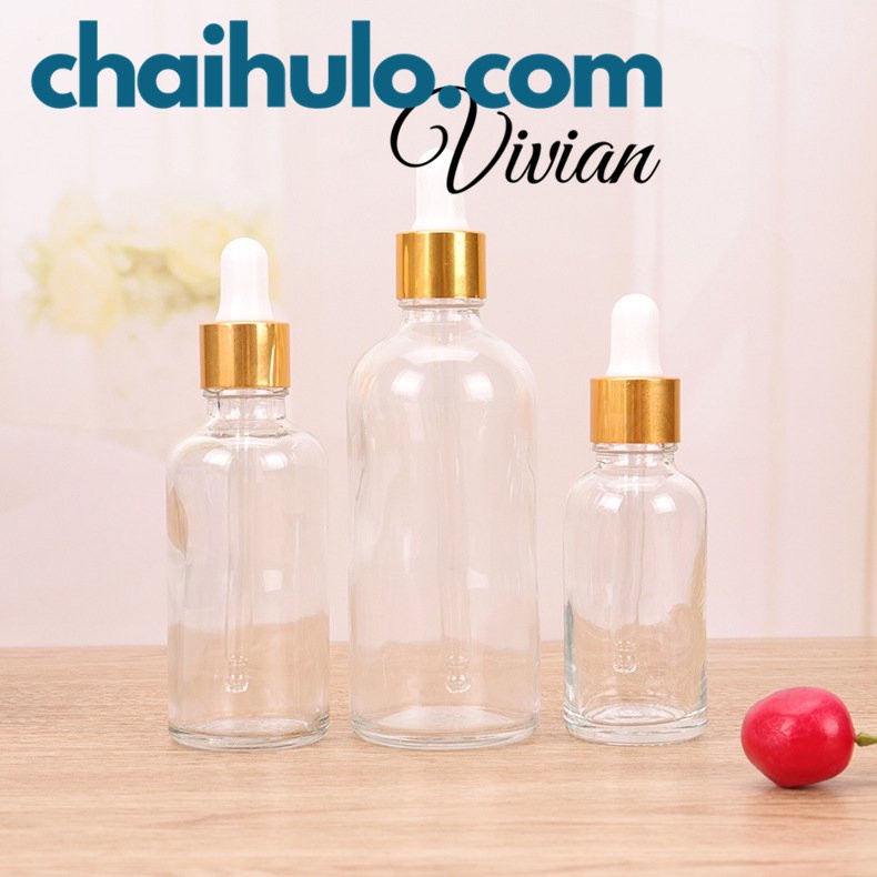 Chai thủy tinh, lọ đựng tinh dầu serum thân trong nắp bóp nhôm vàng nhỏ giọt 5ml 10ml 15ml 20ml 30ml 50ml 100ml