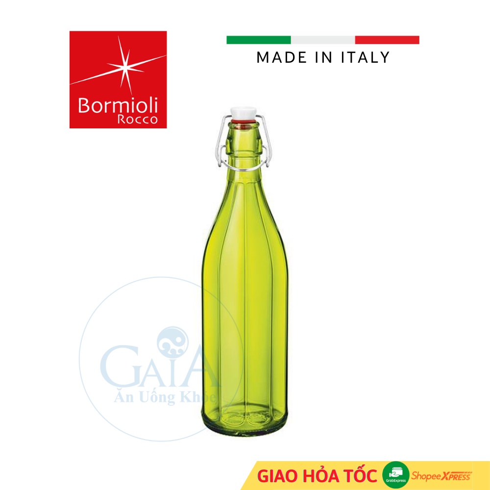 Nhà cửa & Đời sống > Bộ đồ bàn ăn > Bình nước & phụ kiện || Chai thủy tinh màu xanh lá loại nắp cài kín hơi 1 lít Oxford Bormioli RoccoCòn hàng