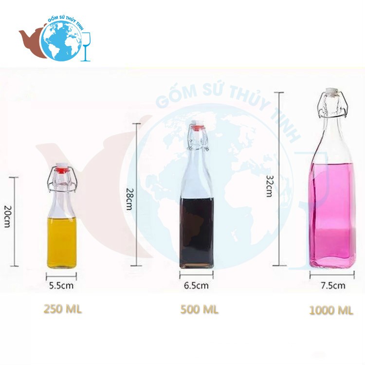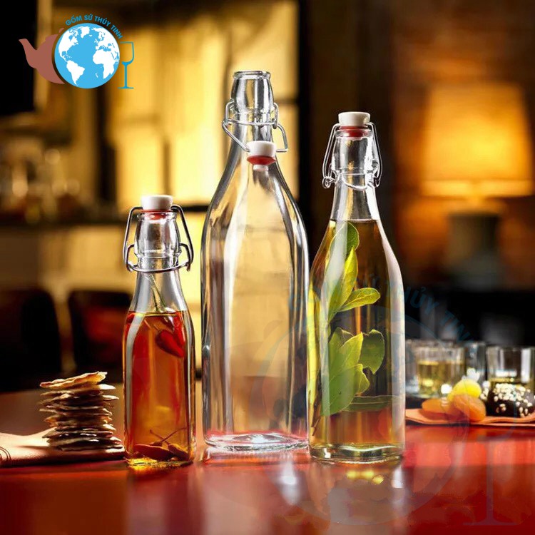 Chai thủy tinh nắp gài 1 lít cao cấp* Ngoài chai 1 lít thì còn Chai có thể tích 250ml; 500ml để bạn có thể lựa chọn.