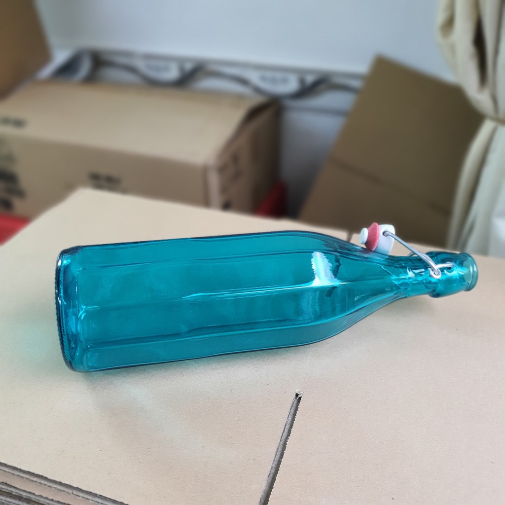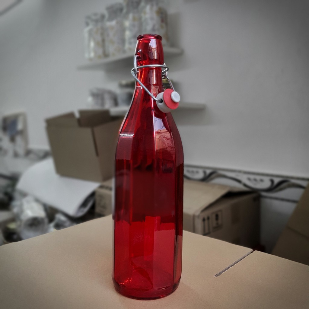 Chai thủy tinh nắp gài 1 Lít Oxford 10 cạnh nhập khẩu ý nhiều màu Đỏ/Cam/Xanh lá/Xám/Xanh dương/Hồng/Tím