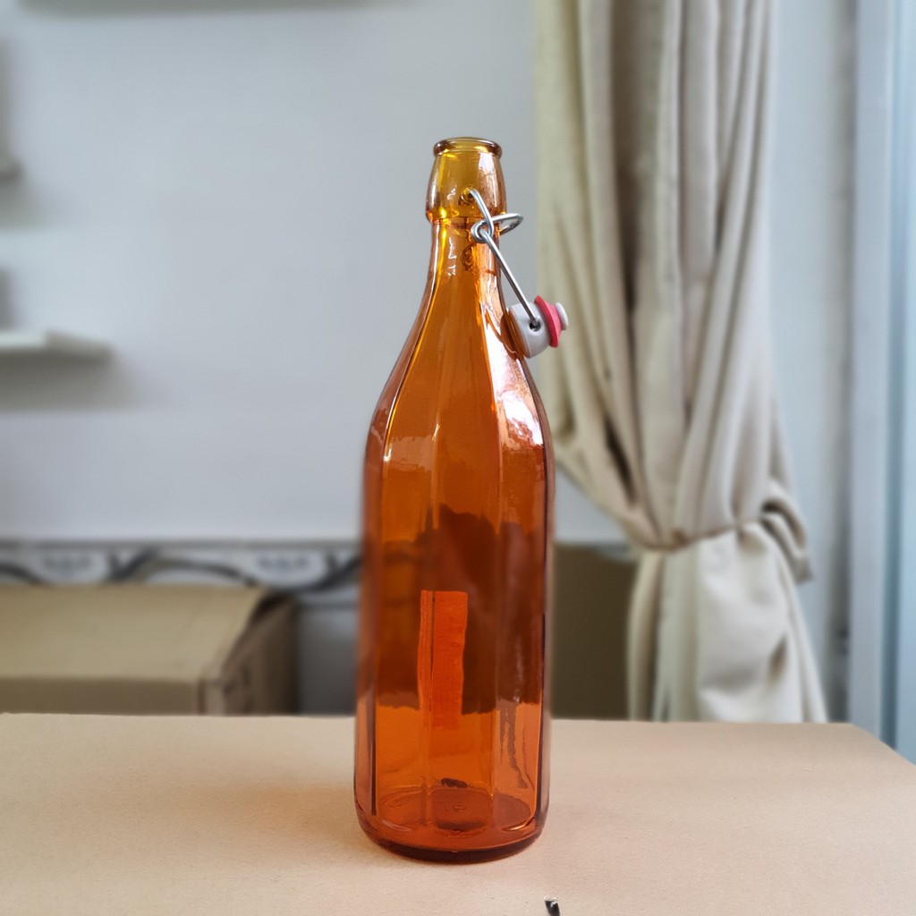 Giới thiệu Chai thủy tinh nắp gài 1 Lít Oxford 10 cạnh nhập khẩu ý nhiều màu Đỏ/Cam/Xanh lá/Xám/Xanh dương/Hồng/Tím