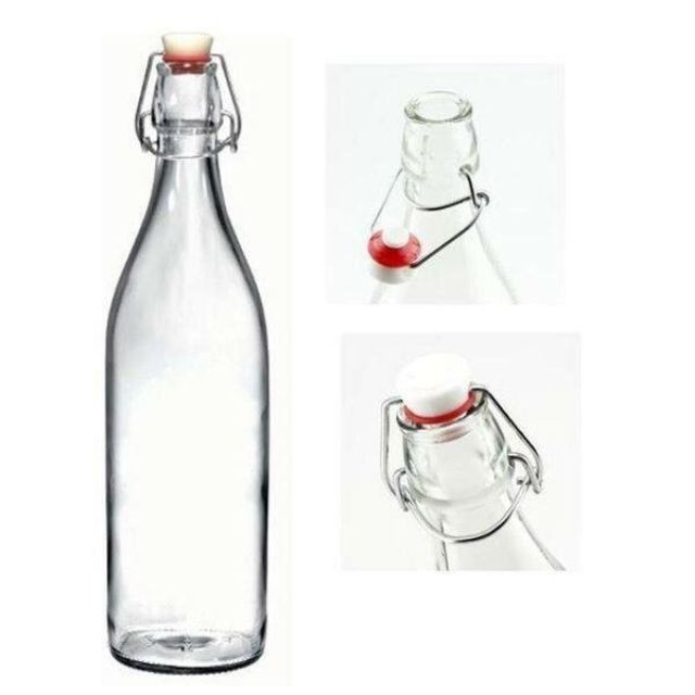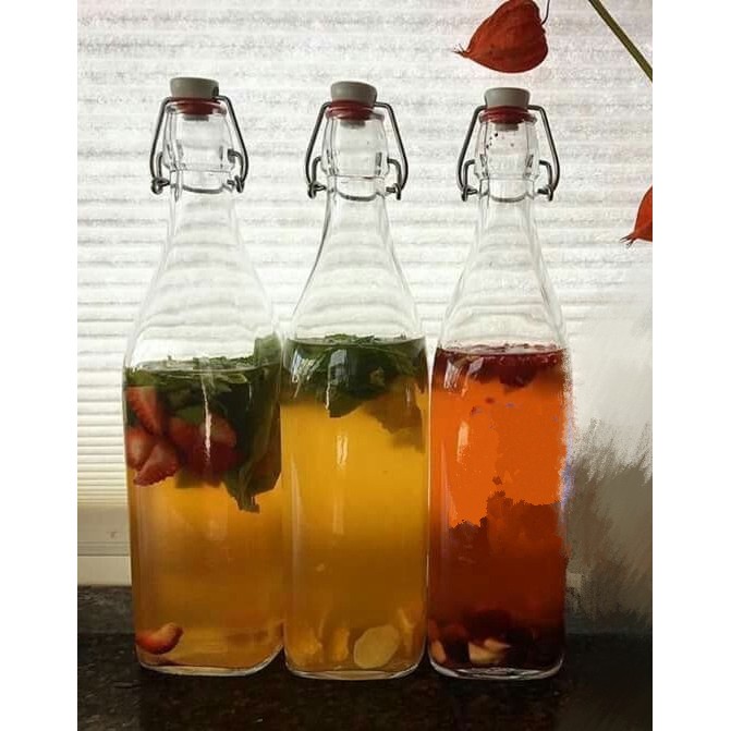 Công dụng đa dạng : Chai thủy tinh có nắp cài kín hơi tuyệt đối. Có thể dùng đựng các nguyên liệu như: rượu, mật ong, giấm, dầu oliu, nước trái cây hoặc các thực phẩm dạng lỏng cần giữ kín hơi và không lo bị nhiểm khuẩn, đảm bảo an toàn vệ sinh thực phẩm, đảm bảo sức khỏe.+ Chai được làm bằng thủy tinh cao cấp nên ít chầy xước , không bám bẩn, dễ dàng vệ sinh sau khi sử dụng.