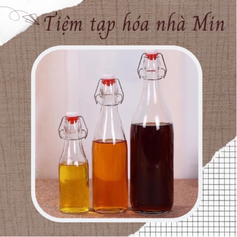 Chai thủy tinh nắp gài màu trắng đựng nước ép hoa quả, f2 kombucha, water kefir.