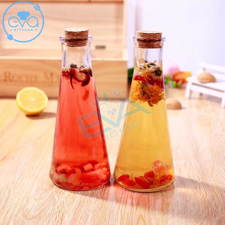 - Công Dụng : Chai tam giác nút bần được làm từ chất liệu thủy tinh dày đẹp, Kiểu dáng thon gọn trong lòng bàn tay, nắp đậy chống tràn khi để nghiêng, Rất phù hợp cho các loại thức uống: nước detox, nước ép, trà sữa… hoặc các loại thực phẩm khác.Cũng phù hợp thiết kế đồ trang trí, đựng đồ lưu niệm, làm quà tặng…