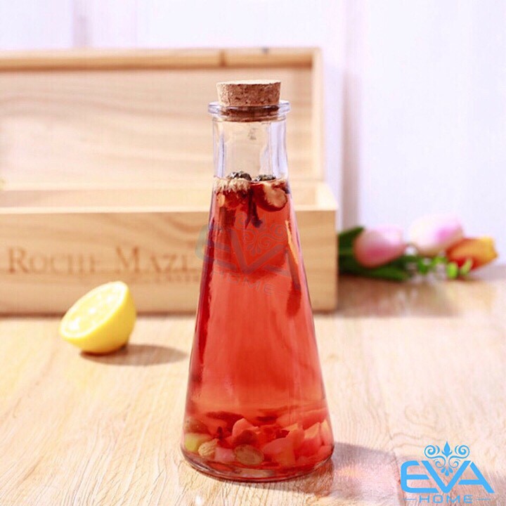 - Công Dụng : Chai tam giác nút bần được làm từ chất liệu thủy tinh dày đẹp, Kiểu dáng thon gọn trong lòng bàn tay, nắp đậy chống tràn khi để nghiêng, Rất phù hợp cho các loại thức uống: nước detox, nước ép, trà sữa… hoặc các loại thực phẩm khác.Cũng phù hợp thiết kế đồ trang trí, đựng đồ lưu niệm, làm quà tặng…