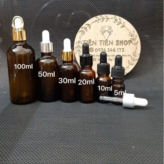 #tientienshop #uytin #chailodungmyphamChai thủy tinh màu nâu, đầu bóp đen