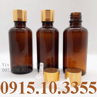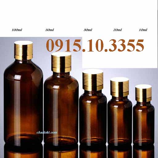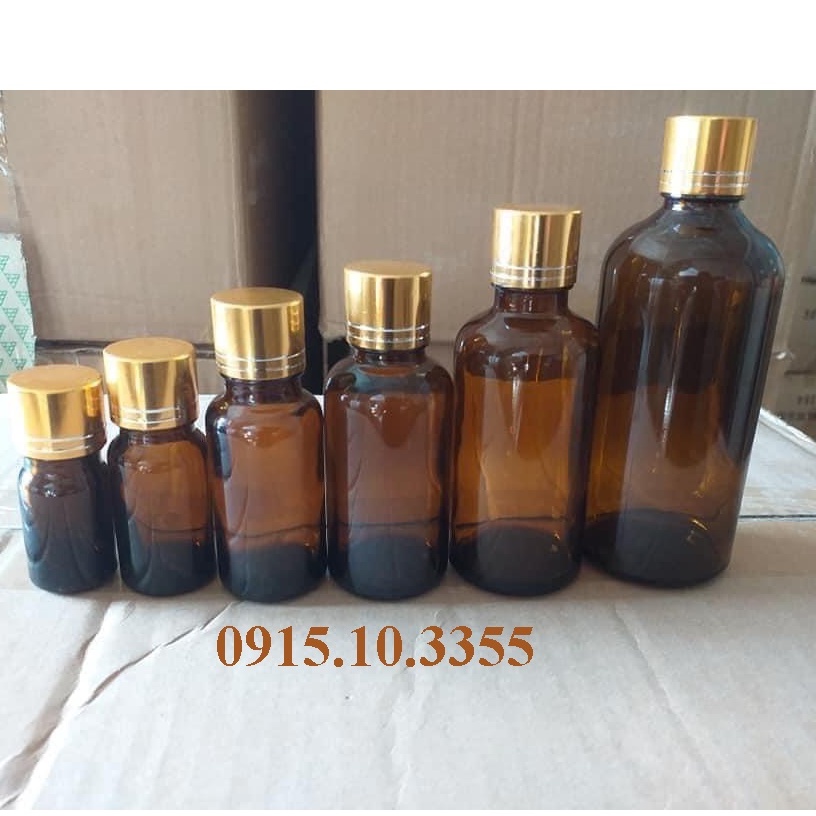 Chai thủy tinh Nâu ( nhỏ giọt + nắp vàng xoắn)