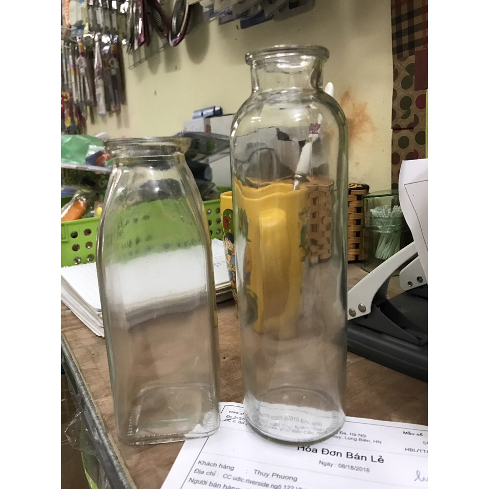 Chai thủy tinh nút gỗ, Lọ hoa thủy tinh hình chai (dáng tròn)