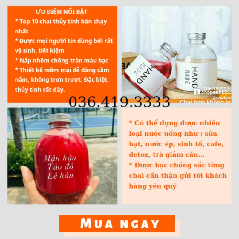 Nếu bạn đang lạc giữa hàng nghìn kết quả sản phẩm chai thủy tinh giống nhau, không biết chọn mua chai ở đâu uy tín hay đang có nhiều thắc mắc về chai thủy tinh,...thì bạn tìm đến Tamchu93 là đúng rồi đó ạ ^^Để được freeship, quý khách ấn MUA HÀNG -> MÃ -> MÃ MIỄN PHÍ VẬN CHUYỂN ( áp dụng với các đơn hàng đủ điều kiện tham gia